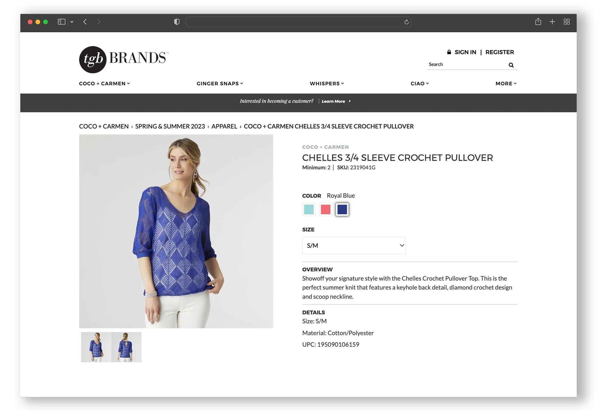 tgbBRANDS is a women's fashion wholesaler. For their Spring/Summer 2023 collection I was tasked with retouching images that are featured on their website, Instagram, and in a printed catalog.